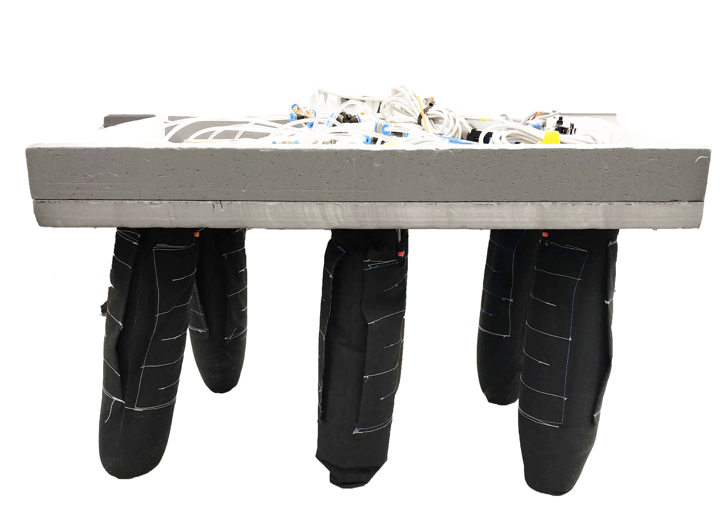 These materials were sufficient to demonstrate a working hexapod robot with a tripod gait pattern to minimise the number of regulators used to only 6, and creating a robot that can achieve an almost %50 reduction in its height and therefore external volume by deflating the legs.